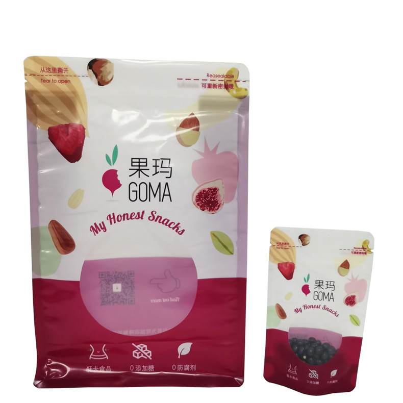 Digital Printing Stand Up Snack Packaging Flat Bottom Bag For Nuts,up to 10 colors, with good quality,Small quantity and so fast.It can custom logo, design, size, thickness as your request. It also can change the bag shade and material as you like,provide one-stop service, if you were interested, please welcome.