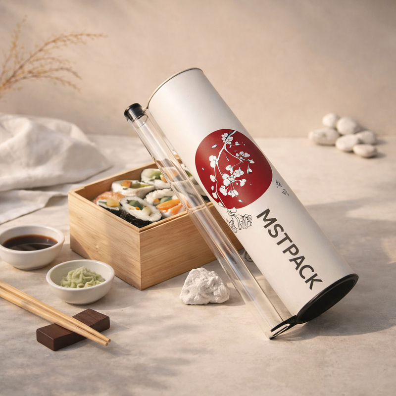 Custom Size Push Up Tube Packaging for Sushi is an innovative, eye-catching food packaging solution designed for modern sushi brands, takeaway restaurants, and food delivery businesses. This push-up tube structure allows consumers to enjoy sushi in a clean, fun, and convenient way—simply push from the bottom and eat from the top, no chopsticks required.